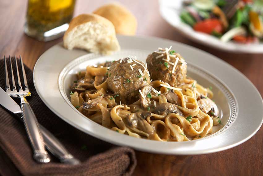 Preheat oven to 350°F and cook meatballs according to the package instructions and set aside for later use. To make the sauce, set a large saucepan over medium heat, add the butter and mushrooms and cook for 7 minutes until they begin to brown stirring often. Stir in the shallots and garlic and continue to cook for an additional 2 minutes. Sprinkle in the flour and stir well. Add the Marsala wine and bring to a boil, stir in the beef stock and heavy cream and return to a simmer. Add the cooked meatballs to the sauce and return to a simmer. Season the sauce with salt and black pepper to taste. Hold mixture covered on low until the pasta is ready. Bring a large pot of water to a boil and cook the fettuccine according to the package instructions. Drain and return to the pasta pot. To serve, divide the pasta among bowls and top with meatballs in Marsala sauce. Garnish with parsley and Parmesan cheese.